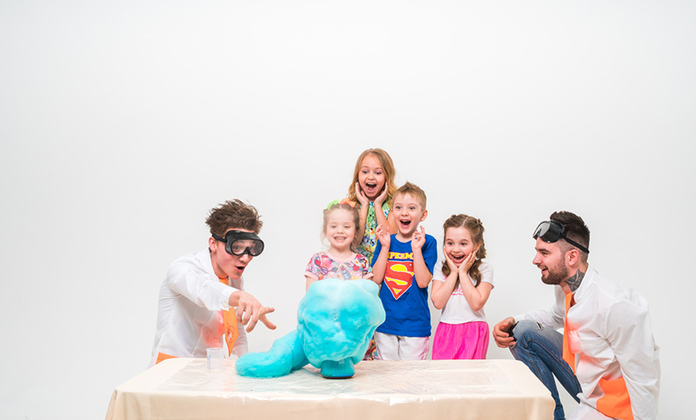 8 (800) 511-88-71Экспериментируем с химией и физикой сразу. Создаем гейзер и много-много синей пены, выпускаем джинна и научим перемещать предметы силой мысли. В открытый космос не выпустим. В конце шоу - настоящий научный подарок имениннику!